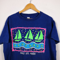 Vintage American T-Shirt | Sail Printed | BS17856. Tag: Textile Prints. Size on tag: Large. Manual Measurement (Laying Flat): Chest Armpit to Armpit: 23 Inch. Length: 26 Inch. (Please compare this measurement with your favorite shirt.) Made in USA. No Edge Bone, No Stain, No Hole. Fabric Material: 100% Cotton. In good Condition overall. BS17856. We do combine shipping. ======================================== We're using the registered air-mail with tracking number (2-4 weeks). For DHL Express packages, please add-on $20, only take 2-5 Day for arrived. TRACKING NUMBER WILL BE GIVEN AFTER POSTAGE. Looking for serious buyer only. Make our shop as favorite as lot of stuff is yet to come! Items are open for negotiation at a reasonable price. Feel free to browse through the listing and you might find some treasure for yourself OR perhaps for your friends and family too! Do follow us for more update and new uploads! Thanks for view and have a nice day.