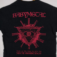 Baby Metal T-Shirt Japanese Kawaii Metal Band | BS18143. Babymetal (stylized in all caps) is a Japanese kawaii metal band. The band consists of Suzuka Nakamoto as "Su-metal" (Vocal and Dance) and Moa Kikuchi as "Moametal" (Scream and Dance). The band is produced by Kobametal from the Amuse talent agency. Their vocals are backed by heavy metal instrumentation, performed by a group of session musicians known as the "Kami Band" at performances. Tag: Baby Metal. Size on tag: Medium. Manual Measurement (Laying Flat): Chest Armpit to Armpit: 20 Inch. Length: 26 Inch. (Please compare this measurement with your favorite shirt.) No Edge Bone, No Stain, No Hole. Fabric Material: 100% Cotton. In good Condition overall. BS18143. We do combine shipping. ======================================== We're using the registered air-mail with tracking number (2-4 weeks). For DHL Express packages, please add-on $20, only take 2-5 Day for arrived. TRACKING NUMBER WILL BE GIVEN AFTER POSTAGE. Looking for serious buyer only. Make our shop as favorite as lot of stuff is yet to come! Items are open for negotiation at a reasonable price. Feel free to browse through the listing and you might find some treasure for yourself OR perhaps for your friends and family too! Do follow us for more update and new uploads! Thanks for view and have a nice day.