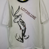 Vintage Bugs Bunny Warner Bros T-Shirt Cartoon Anime Tees | BS45768. Tag: Lot29Luxe. Size on tag: XX-Large. Manual Measurement (Laying Flat): Chest Armpit to Armpit: 25 Inch. Length: 32.5 Inch. (Please compare this measurement with your favorite shirt.) No Stain, No Hole. Fabric Material: 100% Cotton. In good Condition overall. BS45768. We do combine shipping. ======================================== We're using the registered air-mail with tracking number (2-4 weeks). For DHL Express packages, please add-on $20, only take 2-5 Day for arrived. TRACKING NUMBER WILL BE GIVEN AFTER POSTAGE. Looking for serious buyer only. Make our shop as favorite as lot of stuff is yet to come! Items are open for negotiation at a reasonable price. Feel free to browse through the listing and you might find some treasure for yourself OR perhaps for your friends and family too! Do follow us for more update and new uploads! Thanks for view and have a nice day.