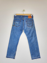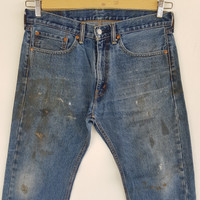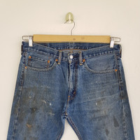 Vintage Dirty Levis 505 Jeans Released Hem Levis 505 Denim - BS46312. Manual Measurement (Laying Flat): 1) Waist: 34 inch. 2) Rise: 11.5 inch. 3) Hip: 23 inch. 4) Tight: 12 inch. 5) Outseam: 41 Inch. 6) Inseam: 30 Inch. 7) Leg Opening: 8.5 inch. Please check measurements to insure a proper fit. Remember to allow yourself some extra room for movement. You can compare these with something from your closet that fits you well. Condition: Good Vintage Condition. Fabric Material: 100% Cotton. BS46312. We do combine shipping. ======================================== We're using the registered air-mail with tracking number (2-4 weeks). For DHL Express packages, please add-on $20, only take 2-5 Day for arrived. TRACKING NUMBER WILL BE GIVEN AFTER POSTAGE. Looking for serious buyer only. Make our shop as favorite as lot of stuff is yet to come! Items are open for negotiation at a reasonable price. Feel free to browse through the listing and you might find some treasure for yourself OR perhaps for your friends and family too! Do follow us for more update and new uploads! Thanks for view and have a nice day.