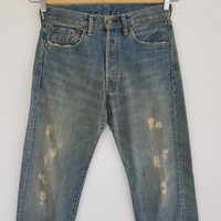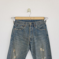 Vintage Distressed Levis 501 Jeans Levis 501 Denim Pants - BS46358. Manual Measurement (Laying Flat): 1) Waist: 28 inch. 2) Rise: 11 inch. 3) Hip: 20 inch. 4) Tight: 11.5 inch. 5) Outseam: 43 Inch. 6) Inseam: 32 Inch. 7) Leg Opening: 7.5 inch. Please check measurements to insure a proper fit. Remember to allow yourself some extra room for movement. You can compare these with something from your closet that fits you well. Condition: Good Vintage Condition. Made in JAPAN. Fabric Material: 100% Cotton. BS46358. We do combine shipping. ======================================== We're using the registered air-mail with tracking number (2-4 weeks). For DHL Express packages, please add-on $20, only take 2-5 Day for arrived. TRACKING NUMBER WILL BE GIVEN AFTER POSTAGE. Looking for serious buyer only. Make our shop as favorite as lot of stuff is yet to come! Items are open for negotiation at a reasonable price. Feel free to browse through the listing and you might find some treasure for yourself OR perhaps for your friends and family too! Do follow us for more update and new uploads! Thanks for view and have a nice day.