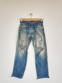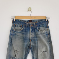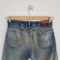 Vintage Lee Selvedge Jeans Distressed Lee Jeans Denim Pants - BS45694. Manual Measurement (Laying Flat): 1) Waist: 31 inch. 2) Rise: 11 inch. 3) Hip: 21 inch. 4) Tight: 11 inch. 5) Outseam: 42.5 Inch. 6) Inseam: 32 Inch. 7) Leg Opening: 9.5 inch. Please check measurements to insure a proper fit. Remember to allow yourself some extra room for movement. You can compare these with something from your closet that fits you well. Condition: Good Vintage Condition. Made in JAPAN. Fabric Material: 100% Cotton. BS45694. We do combine shipping. ======================================== We're using the registered air-mail with tracking number (2-4 weeks). For DHL Express packages, please add-on $20, only take 2-5 Day for arrived. TRACKING NUMBER WILL BE GIVEN AFTER POSTAGE. Looking for serious buyer only. Make our shop as favorite as lot of stuff is yet to come! Items are open for negotiation at a reasonable price. Feel free to browse through the listing and you might find some treasure for yourself OR perhaps for your friends and family too! Do follow us for more update and new uploads! Thanks for view and have a nice day.