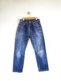 Vintage Levis 501 Jeans Distressed Denim Pants - BS45897. Manual Measurement (Laying Flat): 1) Waist: 27 inch. 2) Rise: 11 inch. 3) Hip: 19 inch. 4) Tight: 11 inch. 5) Outseam: 37.5 Inch. 6) Inseam: 27.5 Inch. 7) Leg Opening: 7.5 inch. Please check measurements to insure a proper fit. Remember to allow yourself some extra room for movement. You can compare these with something from your closet that fits you well. Condition: Good Vintage Condition. Made in USA. Fabric Material: 100% Cotton. BS45897. We do combine shipping. ======================================== We're using the registered air-mail with tracking number (2-4 weeks). For DHL Express packages, please add-on $20, only take 2-5 Day for arrived. TRACKING NUMBER WILL BE GIVEN AFTER POSTAGE. Looking for serious buyer only. Make our shop as favorite as lot of stuff is yet to come! Items are open for negotiation at a reasonable price. Feel free to browse through the listing and you might find some treasure for yourself OR perhaps for your friends and family too! Do follow us for more update and new uploads! Thanks for view and have a nice day.