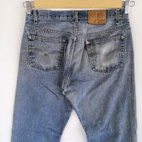 Vintage Distressed Levis 501 Jeans Released Hem Levis Denim - BS46068. Manual Measurement (Laying Flat): 1) Waist: 33 inch. 2) Rise: 11 inch. 3) Hip: 21 inch. 4) Tight: 12 inch. 5) Outseam: 42 Inch. 6) Inseam: 31 Inch. 7) Leg Opening: 8.5 inch. Please check measurements to insure a proper fit. Remember to allow yourself some extra room for movement. You can compare these with something from your closet that fits you well. Condition: Good Vintage Condition. Made in USA. Fabric Material: 100% Cotton. BS46068. We do combine shipping. ======================================== We're using the registered air-mail with tracking number (2-4 weeks). For DHL Express packages, please add-on $20, only take 2-5 Day for arrived. TRACKING NUMBER WILL BE GIVEN AFTER POSTAGE. Looking for serious buyer only. Make our shop as favorite as lot of stuff is yet to come! Items are open for negotiation at a reasonable price. Feel free to browse through the listing and you might find some treasure for yourself OR perhaps for your friends and family too! Do follow us for more update and new uploads! Thanks for view and have a nice day.