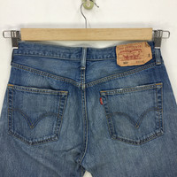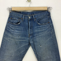 Vintage Levis 501 Jeans Pants Disressed Levis 501 Denim - BS45658. Manual Measurement (Laying Flat): 1) Waist: 32 inch. 2) Rise: 11 inch. 3) Hip: 21.5 inch. 4) Tight: 10 inch. 5) Outseam: 38.5 Inch. 6) Inseam: 27 Inch. 7) Leg Opening: 8 inch. Please check measurements to insure a proper fit. Remember to allow yourself some extra room for movement. You can compare these with something from your closet that fits you well. Condition: Good Vintage Condition. Made in USA. Fabric Material: 100% Cotton. BS45658. We do combine shipping. ======================================== We're using the registered air-mail with tracking number (2-4 weeks). For DHL Express packages, please add-on $20, only take 2-5 Day for arrived. TRACKING NUMBER WILL BE GIVEN AFTER POSTAGE. Looking for serious buyer only. Make our shop as favorite as lot of stuff is yet to come! Items are open for negotiation at a reasonable price. Feel free to browse through the listing and you might find some treasure for yourself OR perhaps for your friends and family too! Do follow us for more update and new uploads! Thanks for view and have a nice day.