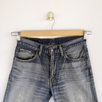 Vintage Levis 501 Jeans Denim Distressed Pants - BS45916. Manual Measurement (Laying Flat): 1) Waist: 29 inch. 2) Rise: 10.5 inch. 3) Hip: 20 inch. 4) Tight: 11.5 inch. 5) Outseam: 35 Inch. 6) Inseam: 26 Inch. 7) Leg Opening: 8.5 inch. Please check measurements to insure a proper fit. Remember to allow yourself some extra room for movement. You can compare these with something from your closet that fits you well. Condition: Good Vintage Condition. Fabric Material: 100% Cotton. BS45916. We do combine shipping. ======================================== We're using the registered air-mail with tracking number (2-4 weeks). For DHL Express packages, please add-on $20, only take 2-5 Day for arrived. TRACKING NUMBER WILL BE GIVEN AFTER POSTAGE. Looking for serious buyer only. Make our shop as favorite as lot of stuff is yet to come! Items are open for negotiation at a reasonable price. Feel free to browse through the listing and you might find some treasure for yourself OR perhaps for your friends and family too! Do follow us for more update and new uploads! Thanks for view and have a nice day.