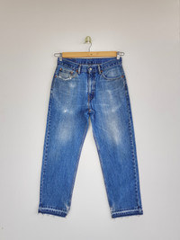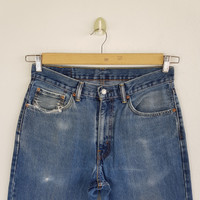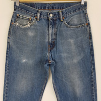 Vintage Levis 550 Jeans Ripped Levis Jeans Denim Pants - BS46314. Manual Measurement (Laying Flat): 1) Waist: 31 inch. 2) Rise: 11.5 inch. 3) Hip: 22.5 inch. 4) Tight: 12.5 inch. 5) Outseam: 41 Inch. 6) Inseam: 29 Inch. 7) Leg Opening: 8 inch. Please check measurements to insure a proper fit. Remember to allow yourself some extra room for movement. You can compare these with something from your closet that fits you well. Condition: Good Vintage Condition. Made in USA. Fabric Material: 100% Cotton. BS46314. We do combine shipping. ======================================== We're using the registered air-mail with tracking number (2-4 weeks). For DHL Express packages, please add-on $20, only take 2-5 Day for arrived. TRACKING NUMBER WILL BE GIVEN AFTER POSTAGE. Looking for serious buyer only. Make our shop as favorite as lot of stuff is yet to come! Items are open for negotiation at a reasonable price. Feel free to browse through the listing and you might find some treasure for yourself OR perhaps for your friends and family too! Do follow us for more update and new uploads! Thanks for view and have a nice day.