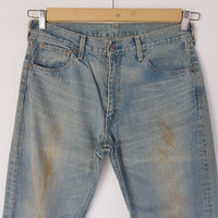 Vintage Dirty Levis 503 Jeans Rusty Levis Jeans Denim Pants - BS46331. Manual Measurement (Laying Flat): 1) Waist: 34 inch. 2) Rise: 12 inch. 3) Hip: 43 inch. 4) Tight: 26 inch. 5) Outseam: 41 Inch. 6) Inseam: 29.5 Inch. 7) Leg Opening: 9 inch. Please check measurements to insure a proper fit. Remember to allow yourself some extra room for movement. You can compare these with something from your closet that fits you well. Condition: Good Vintage Condition. Made in JAPAN. Fabric Material: 100% Cotton. BS46331. We do combine shipping. ======================================== We're using the registered air-mail with tracking number (2-4 weeks). For DHL Express packages, please add-on $20, only take 2-5 Day for arrived. TRACKING NUMBER WILL BE GIVEN AFTER POSTAGE. Looking for serious buyer only. Make our shop as favorite as lot of stuff is yet to come! Items are open for negotiation at a reasonable price. Feel free to browse through the listing and you might find some treasure for yourself OR perhaps for your friends and family too! Do follow us for more update and new uploads! Thanks for view and have a nice day.