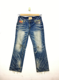 Vintage Lolita Jeans Denim Pants - BS45607. Manual Measurement (Laying Flat): 1) Waist: 32 inch. 2) Rise: 9 inch. 3) Hip: 22 inch. 4) Tight: 11 inch. 5) Outseam: 40.5 Inch. 6) Inseam: 29 Inch. 7) Leg Opening: 9 inch. Please check measurements to insure a proper fit. Remember to allow yourself some extra room for movement. You can compare these with something from your closet that fits you well. Condition: Good Vintage Condition. Fabric Material: 100% Cotton. BS45607. We do combine shipping. ======================================== We're using the registered air-mail with tracking number (2-4 weeks). For DHL Express packages, please add-on $20, only take 2-5 Day for arrived. TRACKING NUMBER WILL BE GIVEN AFTER POSTAGE. Looking for serious buyer only. Make our shop as favorite as lot of stuff is yet to come! Items are open for negotiation at a reasonable price. Feel free to browse through the listing and you might find some treasure for yourself OR perhaps for your friends and family too! Do follow us for more update and new uploads! Thanks for view and have a nice day.