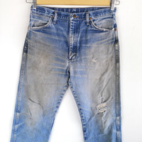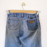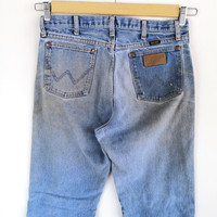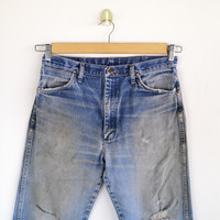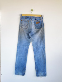 Dirty Vintage Wrangler Jeans Wrangler Denim Pants - BS46093. Manual Measurement (Laying Flat): 1) Waist: 32 inch. 2) Rise: 11.5 inch. 3) Hip: 21.5 inch. 4) Tight: 11.5 inch. 5) Outseam: 44 Inch. 6) Inseam: 33 Inch. 7) Leg Opening: 8 inch. Please check measurements to insure a proper fit. Remember to allow yourself some extra room for movement. You can compare these with something from your closet that fits you well. Condition: Good Vintage Condition. Made in USA. Fabric Material: 100% Cotton. BS46093. We do combine shipping. ======================================== We're using the registered air-mail with tracking number (2-4 weeks). For DHL Express packages, please add-on $20, only take 2-5 Day for arrived. TRACKING NUMBER WILL BE GIVEN AFTER POSTAGE. Looking for serious buyer only. Make our shop as favorite as lot of stuff is yet to come! Items are open for negotiation at a reasonable price. Feel free to browse through the listing and you might find some treasure for yourself OR perhaps for your friends and family too! Do follow us for more update and new uploads! Thanks for view and have a nice day.