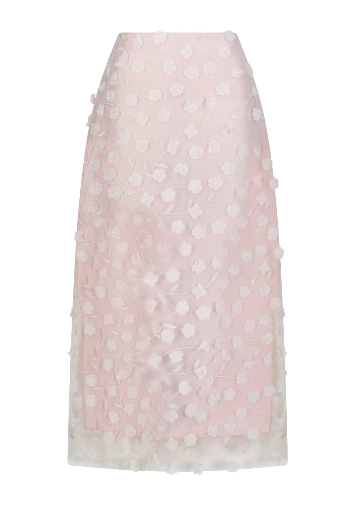 Embrace timeless elegance with the Heather Skirt in Pearl Pink. Crafted from lightweight sheer fabric with intricate floral details, this high-waisted skirt falls to a graceful midi length. The airy, semi-transparent design creates a dreamy silhouette, perfect for transitions. Details Fit: Relaxed , Buy your size.