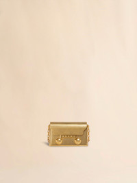 Rectangular Trunkaroo handbag made of brass with 24K gold plating. Nano size. Structured design with small chain strap. Front flap with oversized magnetic closure featuring engraved Marni lettering and two metal stud details for bold visual impact. Made in Italy MODEL SBMP0224L0P8200GLBUR COMPOSITION Body: 100% Brass