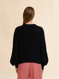 Crew-neck sweater knitted from pure cashmere. Regular fit with long balloon sleeves. Ribbed trims. Embellished with a knitted Marni logo patch. Made in Italy MODEL GCMD0505Q0UFX32500N99 COMPOSITION Primary Fabric: 100% Kashmir Knit