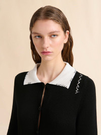 Long-sleeve stockinette stitch cardigan knitted from cotton. Polo collar in a different tone with contrasting stitching along the edges. Hand-stitched Marni Symbol on the shoulder. Regular fit with full button closure. MODEL CDMD0404Q0UFCN5400N99 COMPOSITION Primary Fabric: 100% Cotton Knit - Secondary Fabric: 100% Cotton Knit