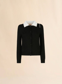 BLACK COTTON CARDIGAN WITH MARNI MENDING