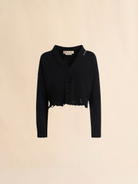 Cropped cardigan. Long-sleeved. V-neck. Horn button closure. Boxy fit. Front hand embroidered logo. Made in Italy MODEL CDMD0223A2UFC65200N99 COMPOSITION Primary Fabric: 100% Cotton Knit