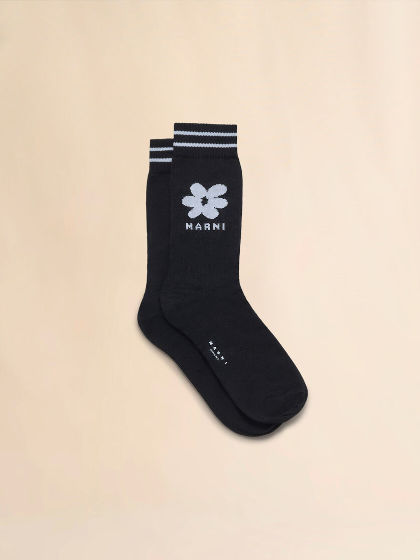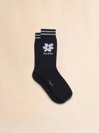 Stretch cotton blend mid-calf socks. Pop Fields flower detail in contrasting color. Elastic cuffs with stripes and Marni jacquard writing. Made in Italy MODEL SKZC0147Q0UFC18200N99 COMPOSITION Primary Fabric: 80% Cotton Knit 20% Polyamide Knit