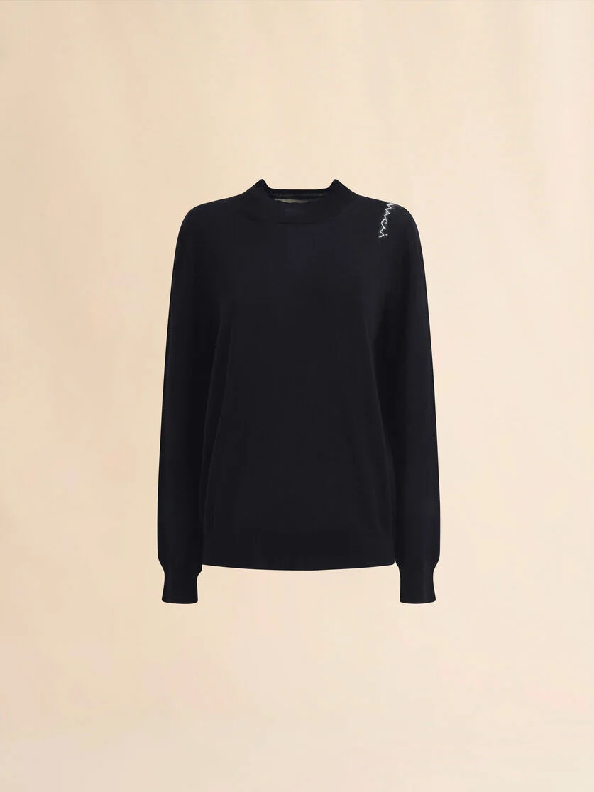 BLACK CREW NECK KNITTED JUMPER WITH CONTRASTING BACK PANEL