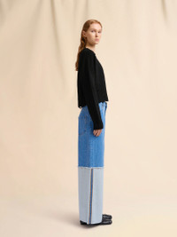 BLACK DISHEVELLED COTTON CROPPED JUMPER