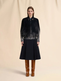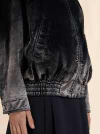 Bomber jacket made from flocked denim, garment-dyed and bleached to create a degrade effect. Styled with raglan sleeves, shirt collar and elasticated hem. Zipper closure, welt pockets and buttoned cuffs. Part of the Artists' Wardrobe: a selection spanning statement pieces and everyday essentials, drawing inspiration from the works of artists Slawn and Soldier. Made in Italy MODEL JKJD0367A0USCY2400N99