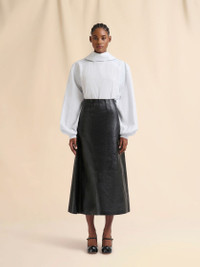 BLACK LEATHER A-LINE SKIRT