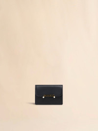 Envelope card holder made from calfskin leather. Ultra-feminine rounded flap with enamelled detail, inspired by the iconic Marni Trunkaroo clasp. Hidden snap button closure. Made in Italy MODEL PFMO0133U0P694800N99