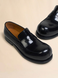 Penny loafer made from polished calfskin leather. Playful sihouette with Marni's signature bubble toe. Leather sole and soft insole with Marni logo. Made in Italy MODEL MOMR006502PS67900N99 COMPOSITION Upper: 100% Calf Leather - Lining: 100% Calf Leather - Inside: 100% Calf Leather - Sole: 100% Calf Leather
