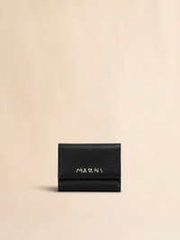 Trifold wallet crafted from milled calfskin leather. Hand-stitched Marni Mending logo on the front. Snap button closure. Zip coin pocket, note compartment, and six card slots. Made in Italy MODEL PFMI0105U0P653300N99 COMPOSITION T1 100% PBV - T2 100% PL - T3 100% PVN - T4 100% VI - T5 100% OTN - T6 100% ZAMA