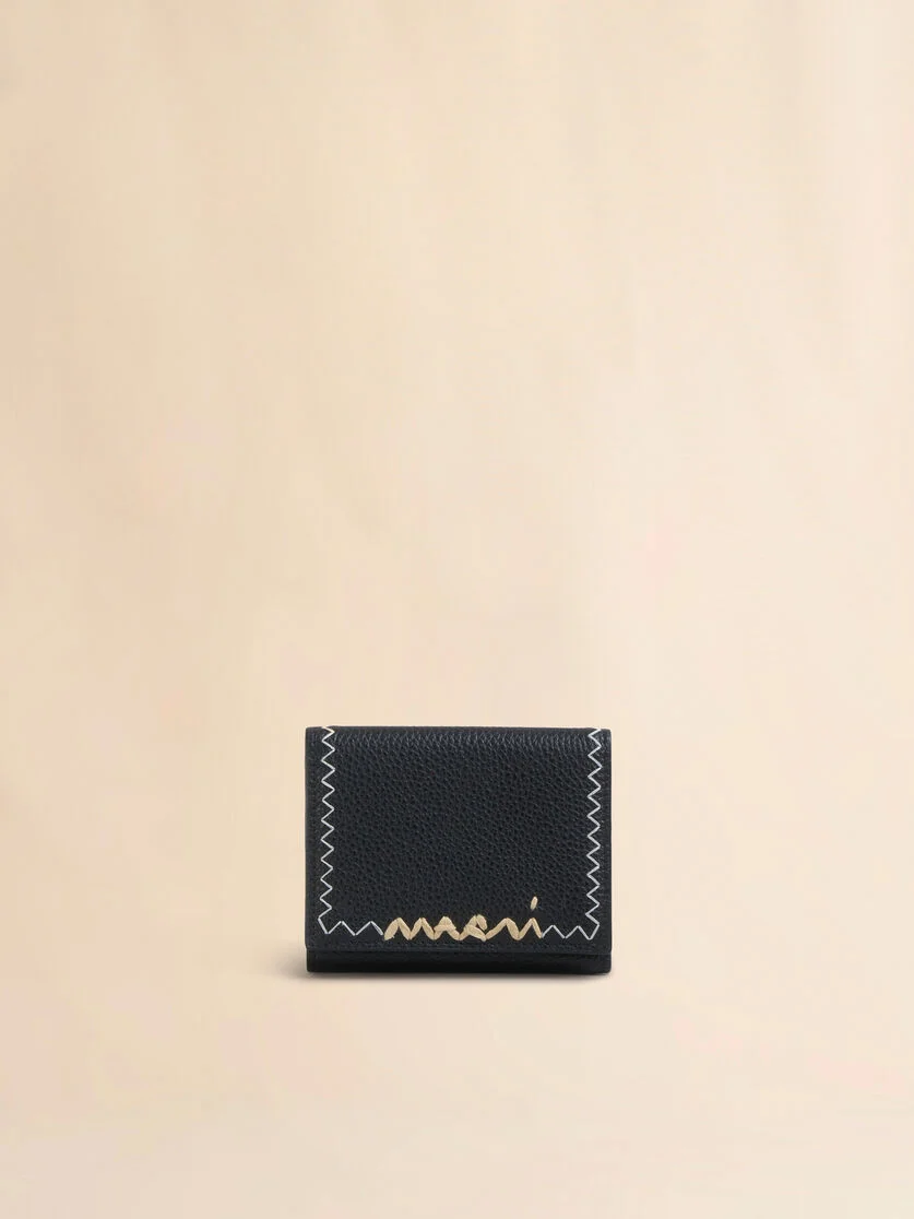 Trifold wallet made of tumbled calfskin leather. Embellished with a hand embroidered Marni Symbol and zigzag stitching feature on the front. External coin pocket with snap button. The inside has a pocket for banknotes and six card slots. This product is made using leather from a Leather Working Group medalled tannery. LWG supports more responsible leather manufacturing across the globe. Made in Italy MODEL PFMO0105U1P653300N99