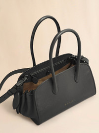 BLACK LEATHER TULIPEA E/W TOTE BAG