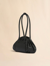 BLACK LEATHER TULIPEA SHOULDER SHOPPER