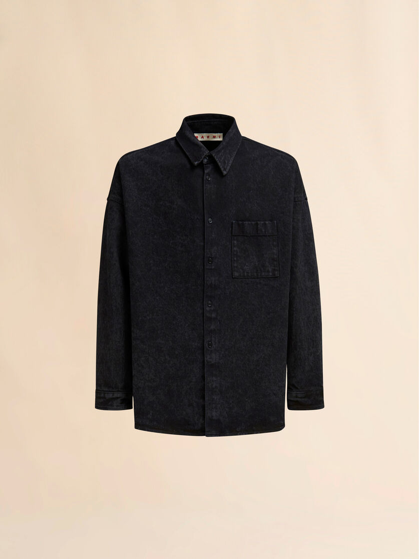 Oversized long-sleeved shirt made from stretch cotton denim with a marble-dyed wash. Straight cut with collar, front button closure and chest pocket. Embellished with a Marni patch on the back neck. Made in Italy MODEL CUJU0061A2USCV35MMN99 FIT The model is 6' 1". The model is wearing size 48 IT. COMPOSITION Primary Fabric: 100% Cotton Woven - Primary Fabric: 100% Cotton Woven