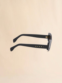 Nyama sunglasses with a bold acetate frame in a rectangular butterfly shape. The wide temples feature a gold-coloured Marni logo on the side. Made in Italy MODEL EWME0086A0H3900010MA COMPOSITION Material: 65% Acetate 15% Metal 20% Resin
