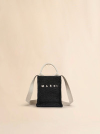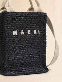 Basket shopper made from woven raffia-effect fabric. Mini size. Tape top handles and shoulder strap. Embroidered Marni logo. Ecru drill lining with logo applique. Made in Italy MODEL SHMP0145U0P3860Z1Q44 COMPOSITION Body: 52% Cotton 48% Polyamide-Nylon - Contrast: 97% Cotton 3% Polyester - Contrast: 100% Calf Leather - Lining: 95% Cotton 5% Acrylic