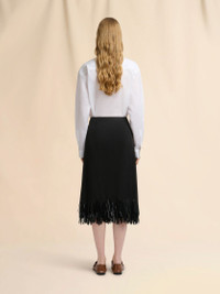 Flared skirt made from fluid Lyocell satin with a matte, velvety "peachskin" texture. This garment revisits the Marni archives with colourful French-cut sequin flowers and elongated sequin fringes reminiscent of feathers. Sculpted with front and back darts. Hidden side zip closure. Lined. Made in Italy MODEL GOMA0837SUUSR03100N99