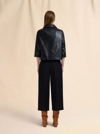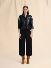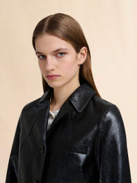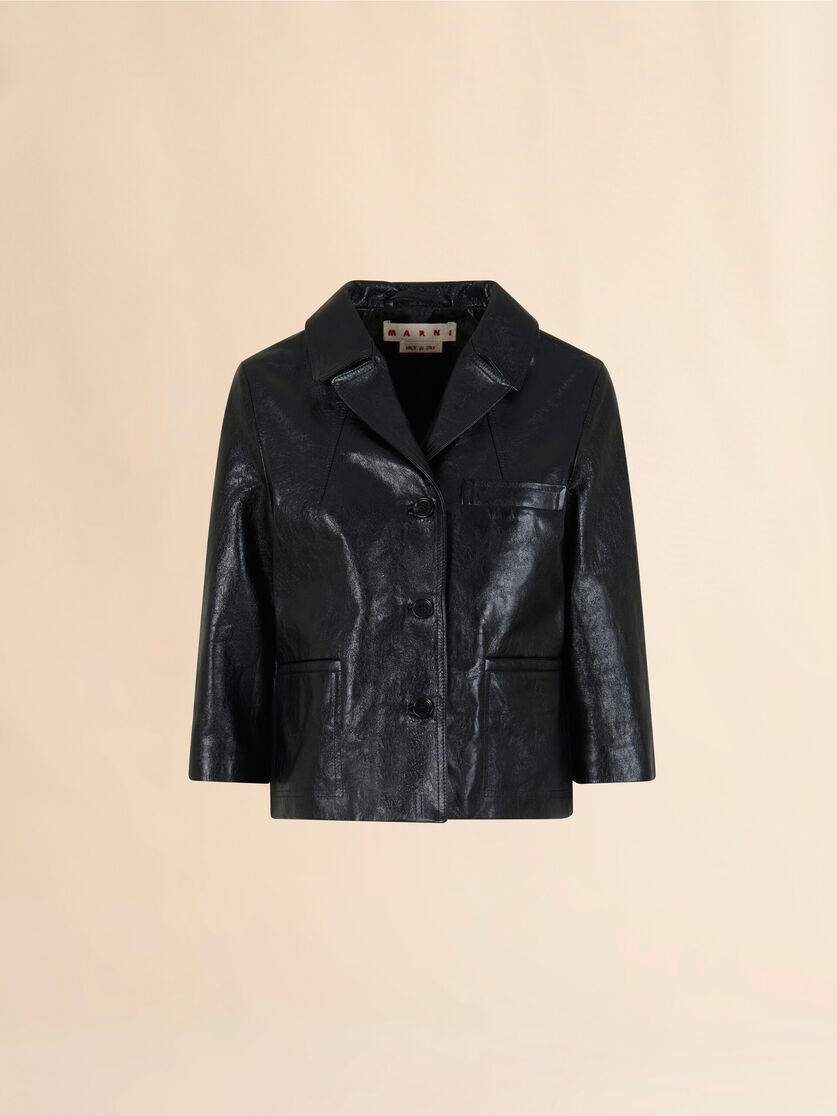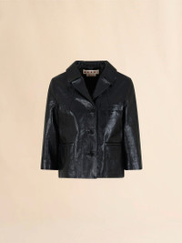 Jacket made from soft leather with a shiny finish. Boxy fit with 3/4 sleeves, lapel collar and welt pockets. Button closure. Embossed Marni logo patch on the back neck. Lined. Made in Italy MODEL GIMX0129M2ULG15300N99 COMPOSITION Leather: 100% Capra - Lining: 100% Viscose-Rayon - Pocket Lining: 100% Cotton Knit