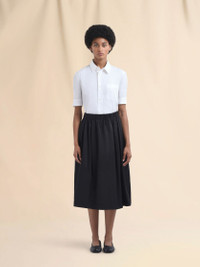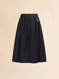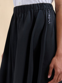 Water-repellent taffeta midi skirt. Loose, soft fit with panel construction, elasticated waist, and side pockets. Finished with a hand-made Marni Symbol embroidery on the front. Made in Italy MODEL GOMA0459S3UTP749WR00N99 FIT The model is 5' 9''. The model is wearing size 40 IT. COMPOSITION Primary Fabric: 66% Polyester Woven 34% Cotton Woven