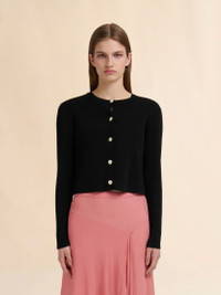 BLACK VISCOSE HALF-AND-HALF CARDIGAN