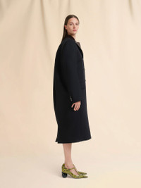 BLACK WOOL FELT COAT WITH LEATHER DETAILS