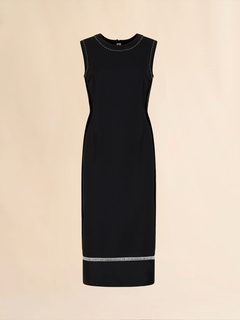 Tropical wool shift dress, putting a subverted spin on a formal classic. Deconstructed tailored cut with external seams and darts. Back inside-out zipper closure. Contrast Marni Mending stitches. Made in Italy MODEL ABMA1428Q0TW83900N99