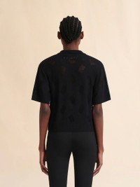 BLACK WOOL-SILK KNIT OPENWORK SHIRT
