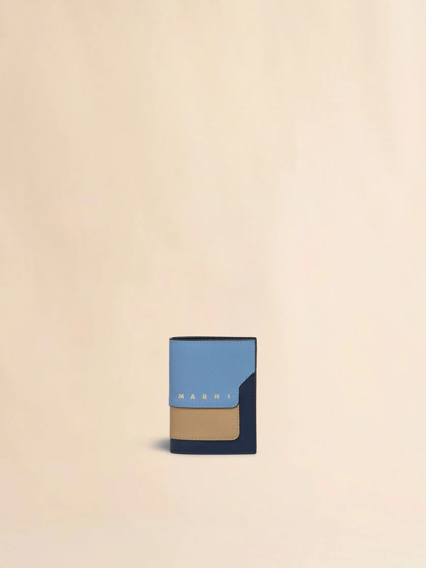 BLUE, BEIGE AND LIGHT BLUE SAFFIANO LEATHER BI-FOLD WALLET