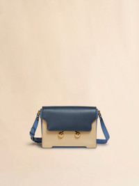 Trunkaroo medium rectangular shoulder bag crafted from calfskin leather. Colour block design. Front flap with magnetic closure, featuring engraved Marni lettering and oversized stud details. Contoured base on the front and back. One compartment with inside pocket. Lined in nappa leather. Detachable and adjustable buckled shoulder strap: can also be worn as a clutch. This product is made using leather from a Leather Working Group medalled tannery. LWG supports more responsible leather manufacturing across the globe. Made in Italy MODEL SBMP0195U1P6948ZO877 COMPOSITION Body: 100% Calf Leather - Lining: 100% Ovine Leather - Metallic Parts: 100% Brass - Metallic Parts: 100% Steel