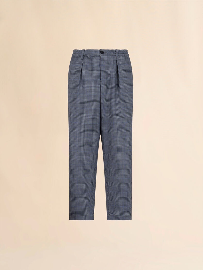 BLUE CHECKED WOOL TROUSERS WITH DRAWSTRING WAIST
