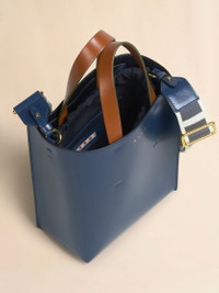 BLUE GRAY AND BROWN LEATHER MUSEO MINI BAG