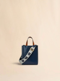 Museo North/South tote bag made from split leather with a smooth, semi-gloss finish. Mini size. Twin handles. Detachable and adjustable tape shoulder strap with jacquard Marni logo. Drawstring liner with inside pocket. Gold Marni logo on the front. Made in Italy MODEL SHMP0039U2LV639ZO961