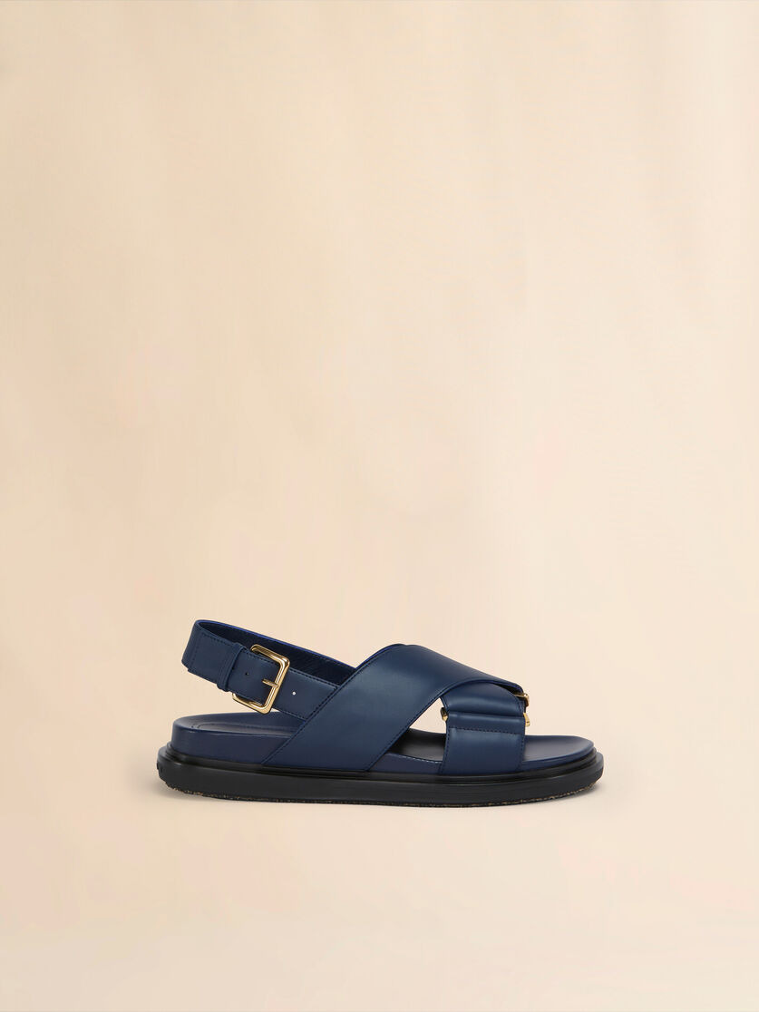 Iconic crisscross Fussbett sandal crafted from smooth calfskin leather, fastening with an adjustable buckle strap. Monocolour design with tonal leather insole and rubber outsole. Raised Marni lettering on the heel. Made in Italy MODEL FBMS015701P361400B61 COMPOSITION Upper: 100% Calf Leather - Lining: 100% Calf Leather - Inside: 100% Ovine Leather - Sole: 100% Rubber