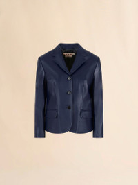 Single breasted jacket cut from buttery soft nappa leather. Flap pockets and open lapels with single slit at the back and two buttons at the front. Lined, with embossed leather Marni logo patch. Made in Italy MODEL GIMX0202U3ULA73600B61 COMPOSITION Leather: 100% Ovine Leather - Lining: 100% Viscose-Rayon - Sleeve Lining: 100% Cupro Woven - Application: 100% Ovine Leather