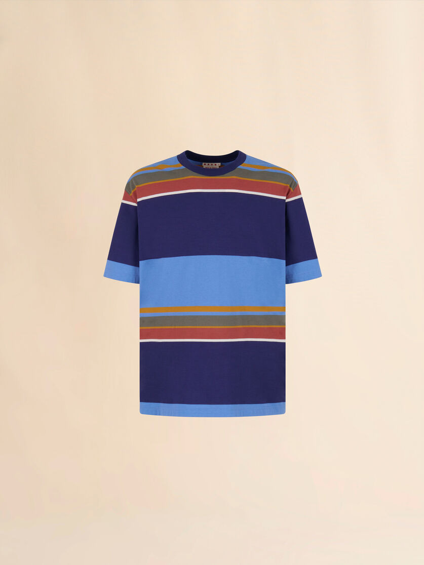 Short-sleeved T-shirt made from organic cotton jersey, featuring colour-block stripes in bright contrasting hues. Oversized fit with ribbed crew neck. Small Marni label on the back neck. MODEL HUMU0287X1UTC535STB62 FIT The model is 6' 2". The model is wearing size 48 IT. COMPOSITION Primary Fabric: 100% Cotton Knit