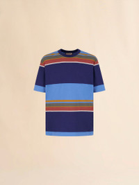 BLUE ORGANIC COTTON T-SHIRT WITH COLOUR-BLOCK STRIPES